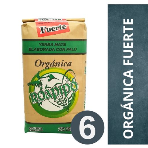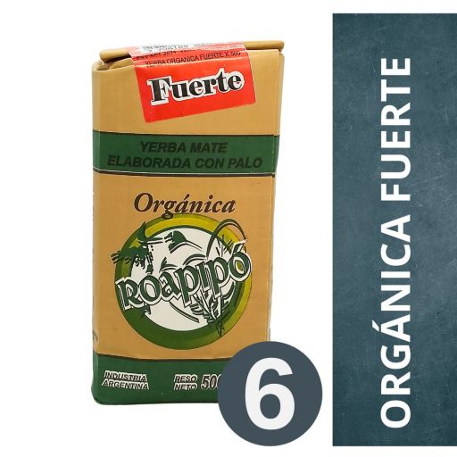 **PACK DE YERBA MATE ORGÁNICA ROAPIPÓ 6 X 500 GR - FUERTE