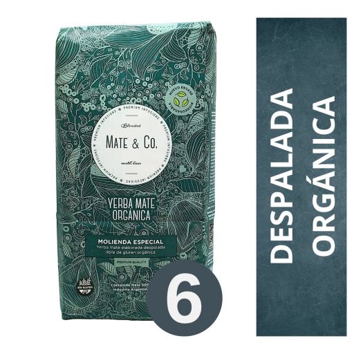 PACK DE YERBA MATE ORGÁNICA DESPALADA MATE & CO 6 X 500 GR