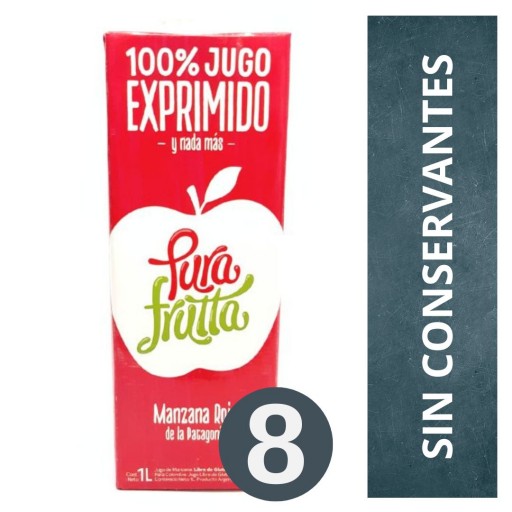 PACK DE JUGO 100% EXPRIMIDO DE MANZANA ROJA PURA FRUTTA - 8 X 1 LT