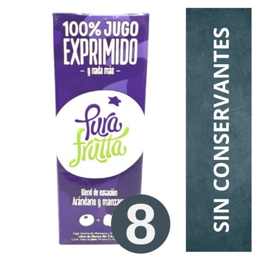 PACK DE JUGO 100% EXPRIMIDO DE MANZANA Y ARÁNDANO PURA FRUTTA - 8 X 1 LT