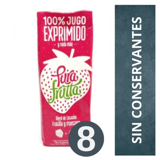PACK DE JUGO 100% EXPRIMIDO DE MANZANA Y FRUTILLA PURA FRUTTA - 8 X 1 LT