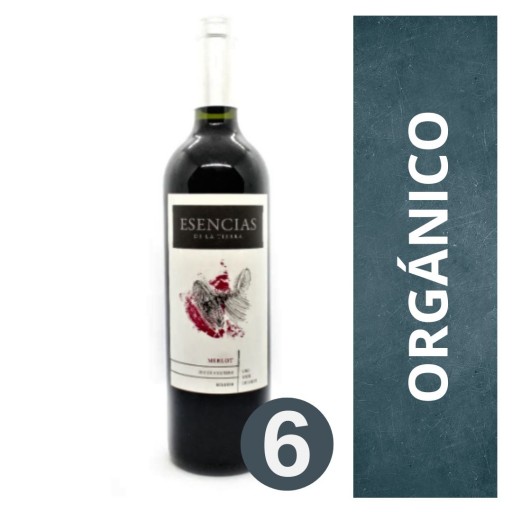 **CAJA DE VINO ORGÁNICO MERLOT ESENCIAS DE MI TIERRA - 6 X 750 CC