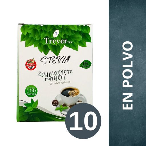 *PACK DE STEVIA TREVER EN POLVO – 10 CAJAS X 100 SOBRES