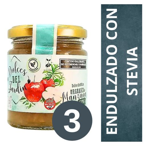 PACK DE MERMELADA ORGÁNICA DE MANZANA DULCES DEL JARDÍN - CON STEVIA 3 X 180 GR