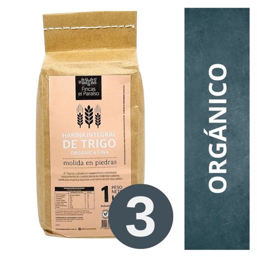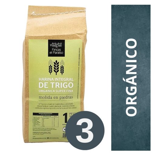 PACK DE HARINA INTEGRAL ORGÁNICA DE TRIGO SÚPER FINA FINCAS EL PARAISO 3 X 1 KG