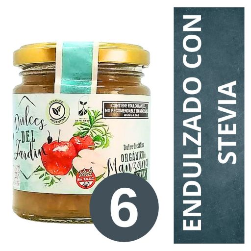 PACK DE MERMELADA ORGÁNICA DE MANZANA DULCES DEL JARDÍN - CON STEVIA 6 X 180 GR